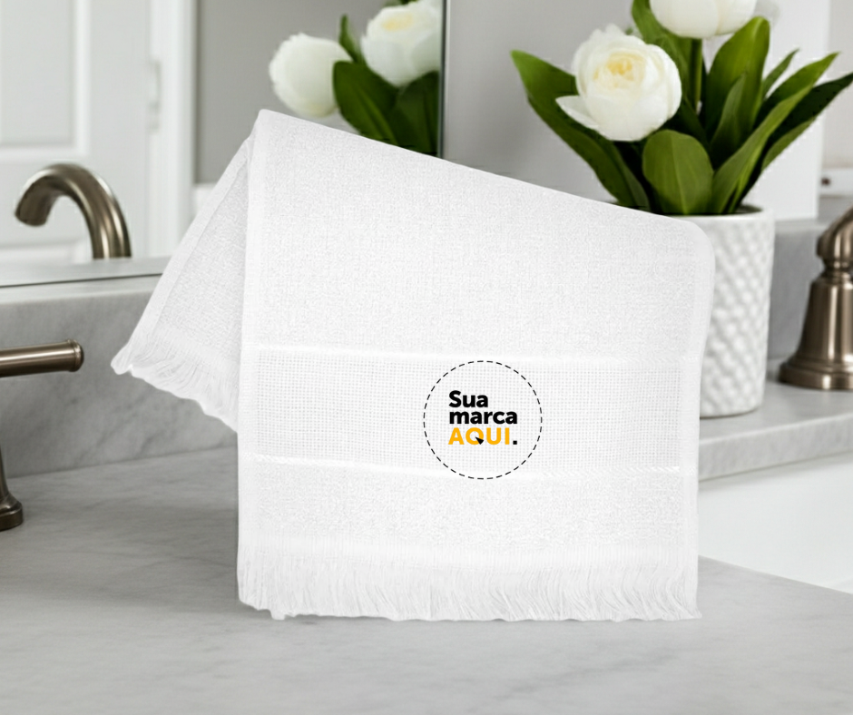 Feita em algodão de alta qualidade, possui toque macio, ótima absorção e área especial para aplicação da sua marca.